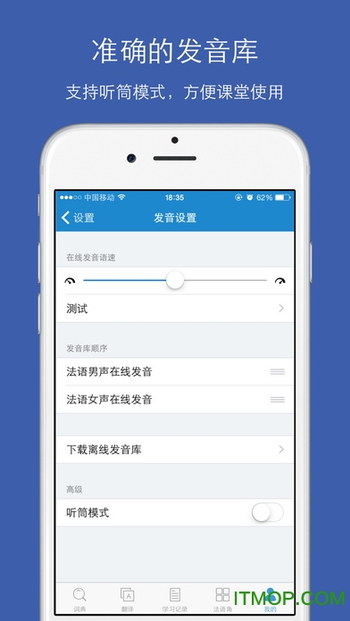 - 法语单词发音功能(需要联网下载免费语音库),让用户能够听到标准发音,提高口语水平。