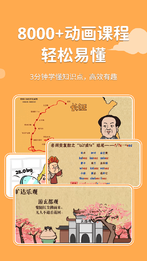 3分钟精要知识点短视频由全国知名教育专家精心录制,采用动画演示和实例讲解相结合的方式,将复杂概念拆解为易于理解的片段,帮助学生快速突破学习瓶颈。从此,难题不再难,你也可以当学霸。