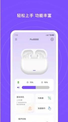 电池状态;通过app中一个简单的可视指示器追踪耳机电池状态,让用户随时掌握耳机续航情况,避免突然断电的尴尬。无线更新;通过无线更新功能让您的耳机始终保持更新,确保您能第一时间体验最新功能和性能优化。耳机电池指示灯;显示耳机的电池电量,以便您可以快速了解剩余的播放时间,并合理安排充电计划。触摸手势定制;允许你根据你的喜好改变你的按钮配置,打造专属的操控方式,提升使用舒适度。