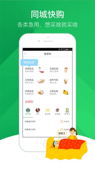 早餐夜宵、啤酒烤串、水果生鲜、超市药店、各类急用,全城帮买,急速送达。平台与多家优质商户建立合作,确保商品质量,同时提供专业的保温配送方案,让热食保持温度,冷饮保持清凉。