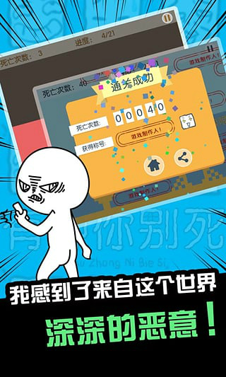 虐心游戏越简单越虐心,本作每过10关还会给玩家一次鼓励,这也增加了玩家前进的动力。