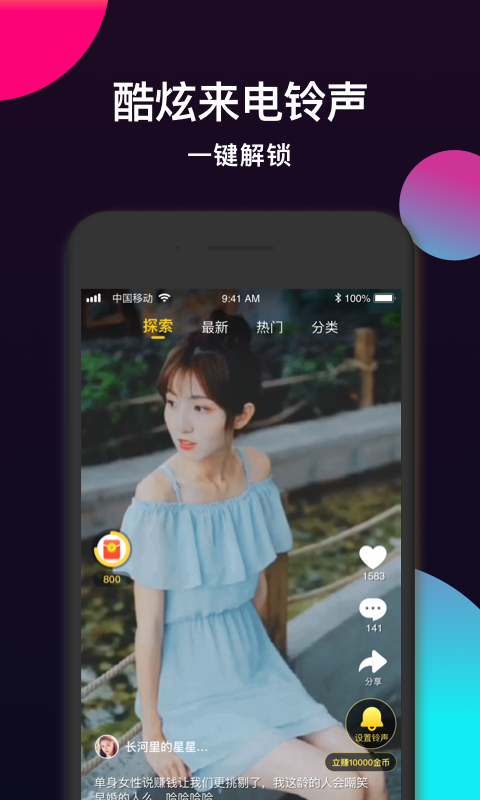 这款软件的亮点在于:界面设计简洁美观,操作流畅自然;铃声分类清晰明了,查找非常方便;支持铃声混剪功能,创意无限;提供热门榜单,让您紧跟潮流;支持本地音乐导入,可以自定义铃声;采用低流量消耗技术,节省手机空间;无广告干扰,提供纯净体验;还有社区分享功能,可以与好友互动交流。