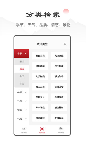 3. 智能检索:支持拼音、关键字、模糊搜索,快速定位目标成语。