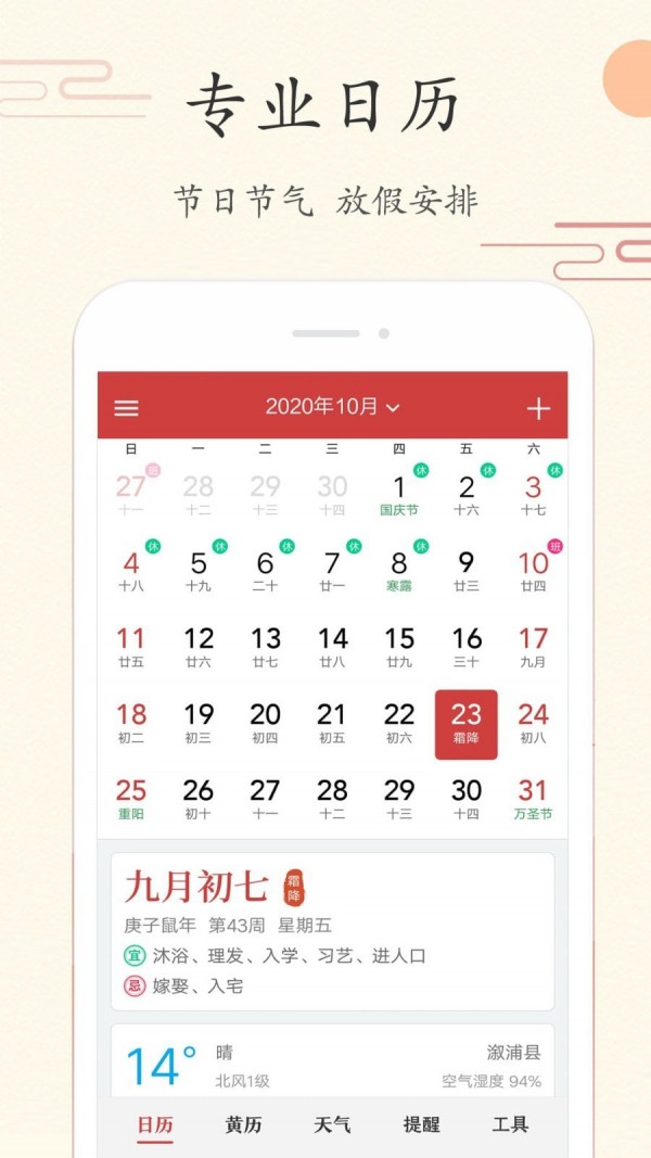 中华日历拥有强大的择日功能,您可以根据个人需求选择良辰吉日来安排重要事项,无论是结婚、搬家还是开业,都能找到最合适的时机。软件还提供了详尽的星座解析功能,帮助您深入了解自己的星座特质、运势走向以及与其他星座的匹配度。此外,中华日历还整合了精准的天气预报功能,让您随时掌握当前和未来几天的天气变化,为出行和生活提供便利。