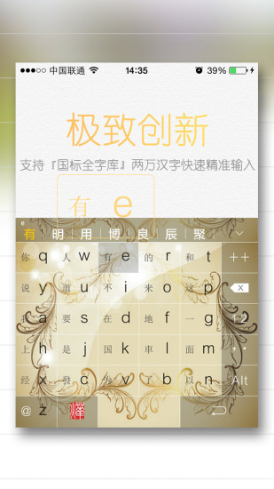 创新的"矩阵单键大字符标准尺寸全键盘"设计,将输入体验提升到全新高度。清晰简约的界面布局配合精工细致的视觉设计,为用户带来极致的单手操控体验。这种设计不仅有效防止误触,还能实现精准快速的输入,大幅减少候选词筛选的需求。更重要的是,烨古输入法完美解决了拼音输入法在多音字和生僻字输入上的固有缺陷,用户无需反复翻页查找,仅需两键即可输入98%的常用字词,四键就能精准输入GBK字符集内的所有繁简体汉字及词语。