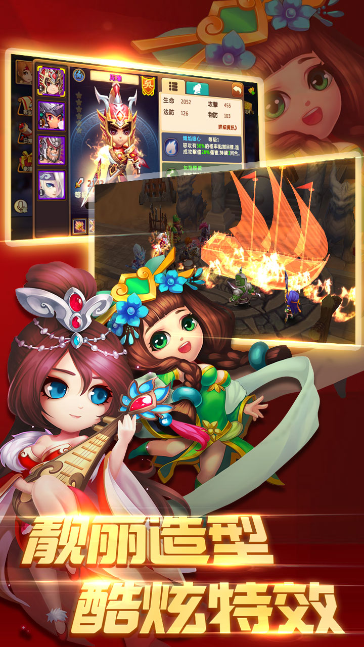 游戏采用精美细腻的美术风格,从场景到角色都经过精心设计,各种华丽的技能特效令人目不暇接。Q萌可爱的三国名将形象既保留了历史人物的特点,又增添了独特的趣味性。独特的怒气系统让战斗更具策略性,玩家需要在攻击和被攻击时合理积攒怒气值。战斗过程中流畅的打击感和电影级的镜头切换,让每场战斗都充满视觉冲击力,完美展现武将的英姿。