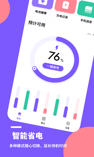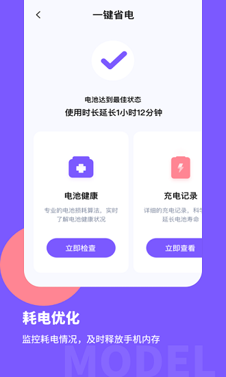 pro是一款专业的手机电池优化工具,通过智能算法全方位提升设备续航能力。它能自动分析后台耗电应用,提供精准的电池健康检测,并在充电时进行智能保护。用户可随时查看耗电排行榜,快速关闭高耗电程序,有效延长日常使用时间。无论是日常通勤还是长途旅行,都能避免电量焦虑,让手机始终保持最佳状态。其简洁直观的界面设计,让电池管理变得轻松高效。