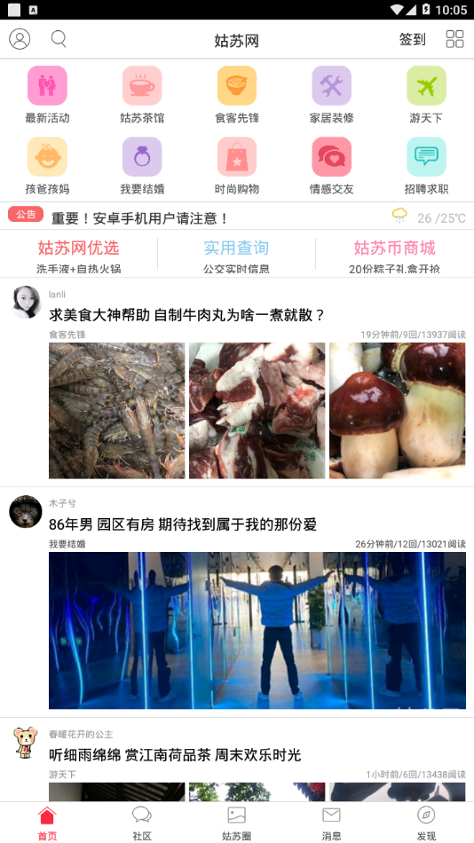 姑苏网app不仅是一个信息平台,更是一个连接苏州人的社交网络。在这里,用户可以轻松实现购物、交友、房产咨询、装修指导、旅游攻略等多样化需求,帮助每个苏州人快速找到属于自己的兴趣圈子。平台汇聚了苏州本地最新鲜、最实用的生活资讯,让用户足不出户就能掌握苏州大小事。