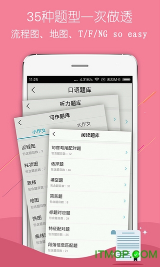 软件持续更新最新的雅思考试资料,目前已完整收录《剑桥雅思11》的全部题目,确保用户能够接触到最接近真实考试的练习内容。