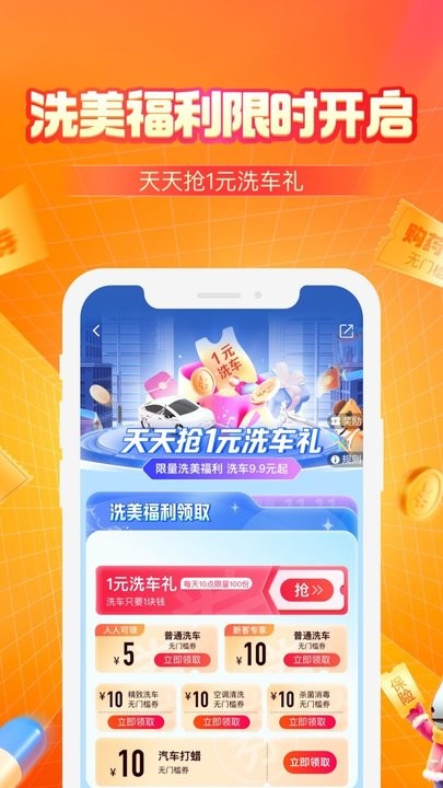 3、洗美福利限时开启,抢1元洗车礼;新增20家高端洗车门店入驻。
