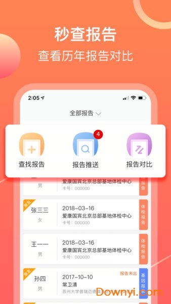 爱康体检宝提供完善的会员管理系统,用户可以方便地管理个人账户信息、体检人资料、预约记录等。所有体检报告都会第一时间上传至系统,用户登录后即可查看详细的体检结果。软件还提供历年体检数据的对比分析,帮助用户更直观地了解健康状况的变化趋势。此外,用户还可以设置体检提醒,确保定期进行健康检查。