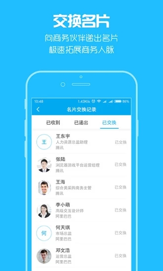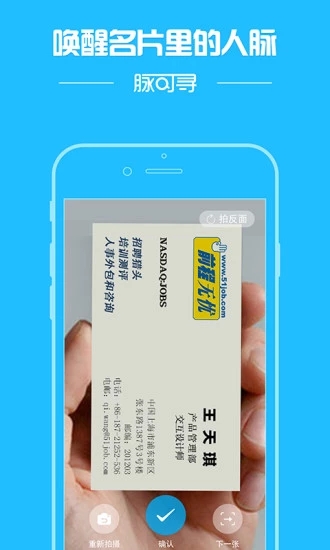 【自动备份名片,多手机同步使用】采用分布式云存储技术,支持跨平台实时同步,在手机更换或丢失时可通过加密通道快速恢复所有数据,彻底解决后顾之忧。
