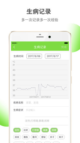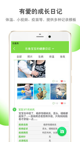 快速记录:通过智能提醒功能,帮助家长及时记录体温、照片、日记、身高、生病用药、疫苗等关键数据,建立完整的成长档案库。系统会自动生成可视化图表,直观展示宝宝发育趋势。