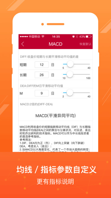 行情模块全面升级,技术分析功能更强大:新增个股分时走势叠加功能,支持叠加其他个股/指数/板块分时曲线;新增分时功能,日K曲线长按后可点击查看历史分时图;新增多项技术指标,每项指标均附带详细说明;支持自定义均线功能,满足您的个性化分析需求。