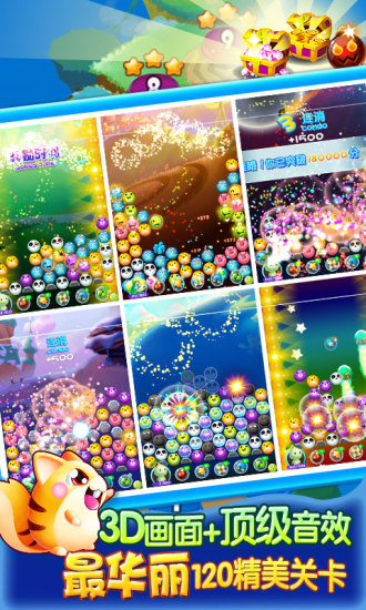 3D画面+激萌音效:游戏采用先进的3D渲染技术,每个泡泡都栩栩如生,搭配轻松欢快的背景音乐和生动的音效。