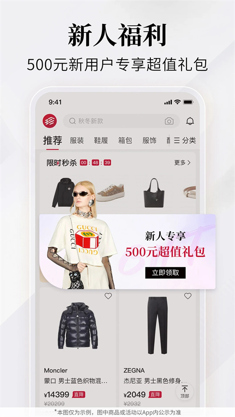 新用户注册珍品网APP即可获得价值1888元的优惠券礼包,其中包括满200元减100元等优惠券。这些优惠券可在大部分商品上使用(少量特殊商品及全球购商品除外),帮助用户以更优惠的价格购买心仪的奢侈品。