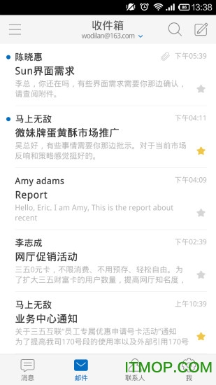 邮洽手机邮箱是一款专为商务人士打造的移动办公应用,它以邮件处理为核心,同时整合了多种办公功能。用户可以通过手机轻松管理各类邮箱账号,包括个人邮箱和企业邮箱,实现一键快速登录。该应用还提供智能通讯录同步、企业公告推送、重要事项提醒等实用功能,帮助用户高效处理工作事务。无论是跨部门协作还是日常邮件往来,邮洽都能提供便捷的解决方案,让移动办公更加智能高效。