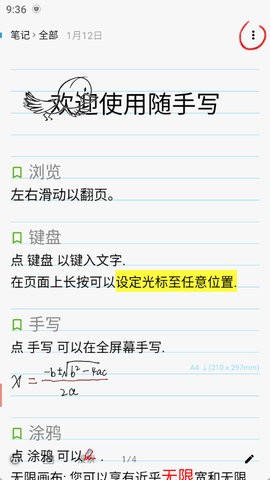 随手写的原笔迹手写功能让记录更快速自然,也更有亲切感。编辑功能十分灵活,可以随意设置笔迹的样式和外观。手写内容会自动保存,省去了手动保存和选字识别的麻烦。在手写区简单长按,就能快速插入图片或录制音频。云同步功能为您的笔记提供双重保障,即使遇到手机损坏等意外情况,也能轻松恢复之前的数据。隐私保护方面,您可以为笔记设置密码,防止他人查看。社交分享功能也十分便捷,可以快速将笔记分享到微博、微信等主流社交平台。