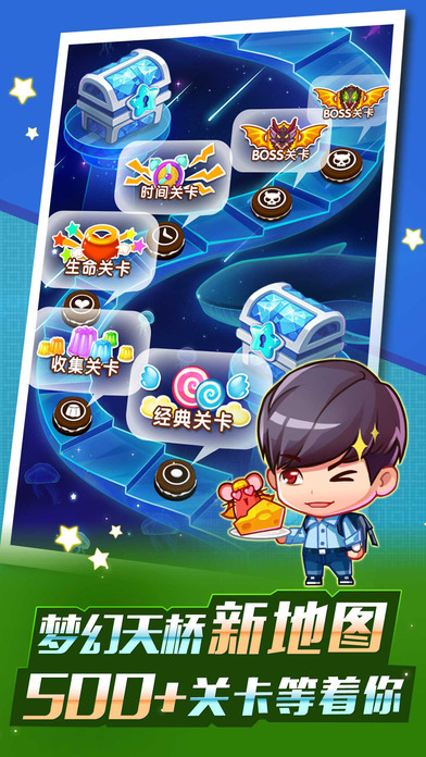 角色萌宠对对碰,打造最强阵容。游戏中有数十种各具特色的角色和宠物可供收集,通过合理搭配可以组成各种强力组合,让消除战斗更加轻松有趣。