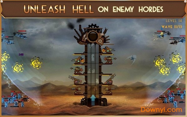 游戏采用了极具辨识度的画面风格,融合了剪纸艺术与蒸汽朋克元素,为玩家呈现出一个既复古又充满未来感的独特世界。战斗场面异常火爆,爆炸效果震撼,子弹与炮弹在空中交织飞舞,带来强烈的视觉冲击。操作方面,游戏设计得非常友好,玩家只需通过简单的拖拽即可完成防御塔的部署和攻击指令,即使是新手也能快速上手。此外,游戏最引人注目的特色莫过于其华丽的爆炸效果,每一次战斗都像是一场视觉盛宴,让人目不暇接。