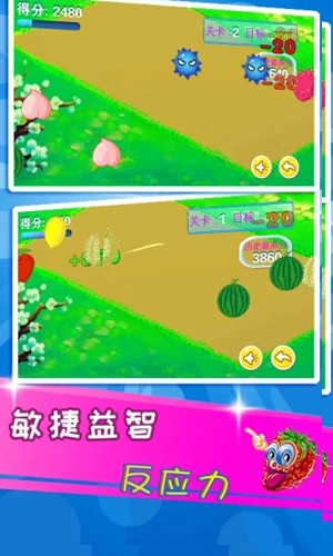 儿童益智切水果app是一款专为3-8岁儿童精心打造的趣味启蒙游戏。游戏采用色彩鲜艳的卡通风格,将切水果的简单操作与益智元素完美结合,通过生动有趣的水果形象和轻松上手的玩法,帮助孩子在娱乐中培养手眼协调能力和逻辑思维。游戏中设计了多种互动模式,孩子们可以用手指滑动屏幕切开各种水果,同时还要躲避炸弹等障碍物,在收获快乐的同时也能锻炼反应速度。这款寓教于乐的游戏不仅能激发孩子的学习兴趣,还能培养他们的专注力和观察力。