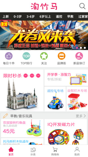 淘竹马app是一款专为妈妈们打造的玩具购物平台,致力于为家庭提供高品质、高性价比的玩具产品。在这个应用中,用户可以轻松浏览海量精选玩具,享受一站式购物体验。平台不仅提供常规销售,还设有每日限时秒杀、特卖专场等活动,让妈妈们以更优惠的价格购买到正品玩具。无论是益智玩具、早教用品,还是户外娱乐设备,淘竹马都能满足不同年龄段孩子的需求。现在就来下载淘竹马,开启快乐购物之旅吧!