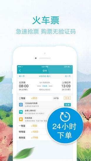 火车票查询与购买,提供高铁、动车等全类型车票,出行选择多样化