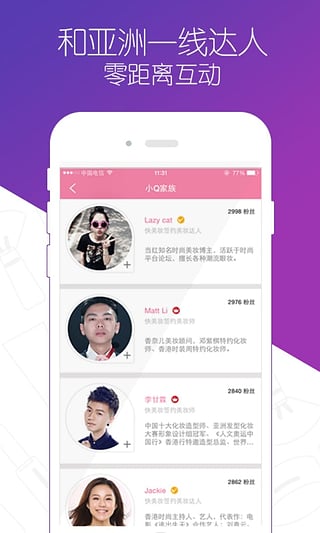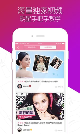App邀请了众多潮流明星的御用美妆班底强势入驻,包括邓紫棋、王珞丹、古天乐、林俊杰等大牌明星的专用化妆造型师,他们将细致剖析各类妆容的要点和技巧。此外,亚洲一线美妆达人也会以美妆po主的身份加入,与用户零距离互动,分享最新的美妆心得和流行趋势。