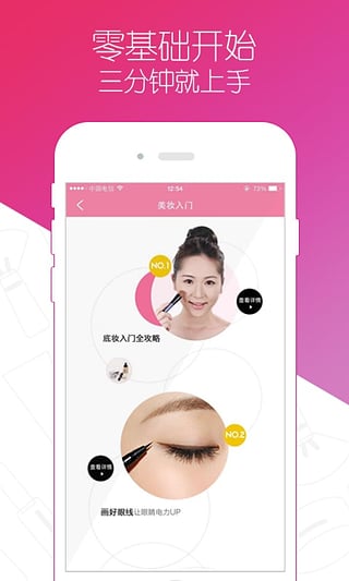 针对零基础用户,App提供了从入门到进阶的完整教程体系。从最基础的底妆技巧开始,逐步教授眼线、眉形、睫毛、腮红等关键步骤,让新手也能快速上手,轻松掌握化妆要领。