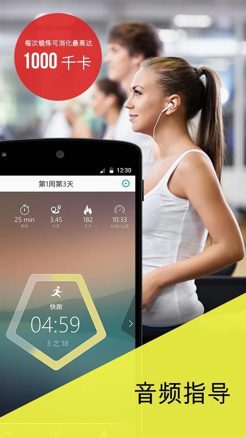 训练方案 -专门为瘦身而设的间歇性训练独特方案,基于运动医学研究设计,能有效提升基础代谢率; -现成的两个月训练计划,每周三天,科学安排休息日避免运动损伤; -结合步行、跑步和冲刺,以在更少时间内取得最佳成果,30分钟训练相当于普通跑步1小时效果; -三种方案选项供不同级别使用:初学者和10公里跑手都适合,每阶段都有详细指导; -无论室外或室内跑步都适合,支持跑步机模式自动调整训练参数。 更多训练计划 根据应用中不同的训练计划改变您的锻炼: -徒步瘦身-中级水平,适合体重基数较大人群; -开始跑步,从零基础到连续跑30分钟; -5公里跑步训练!,8周完成首个5公里目标; -10公里跑步训练!,为进阶跑者准备的系统课程。 的体能锻炼模式 -GPS跑步地图,实时记录运动轨迹和海拔变化; -每一段训练都有指示,语音提醒配速和心率区间; -从app中也能轻松存取音乐、有声书和播客,支持主流音乐平台接入; -人工编辑训练计划,专业教练团队定期更新课程。 保持动力 -有关跑步、健康营养方式的数十条诀窍,每周更新科学减脂知识; -卡路里计算,根据体重和运动强度精准估算消耗; -详细的跑步统计,分析步频、触地时间等专业数据; -和Runer、Fitbit、MapMyRun整合,同步所有运动数据; -取得成绩并和Facebook及Twitter的朋友分享成果,组建跑团互相激励。