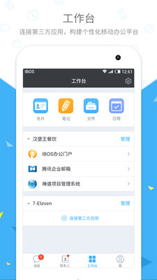 工作台:四大基础应用均采用军工级加密技术,保障商务数据安全;第三方应用市场提供上百款专业工具,支持个性化工作台定制,满足不同行业特殊需求。