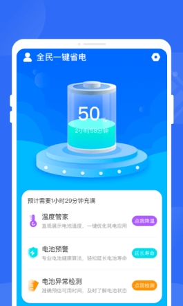 全民一键省电是一款专为智能手机用户打造的电池优化管理工具,通过智能算法和多项实用功能,全方位保护您的手机电池健康。它能实时监控电池状态,在充电时自动调节电流防止过热,同时精准降低电池损耗,延长电池寿命。软件提供多种个性化管理模式,无论是日常使用还是紧急省电需求,都能一键切换,满足不同场景下的用电需求。简洁直观的操作界面让新手也能快速上手,让您的手机续航更持久,使用更安心。