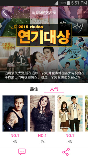作为一款深受2000万用户喜爱的追剧神器,追啊app不仅提供最新韩剧资源、明星动态和高清剧照,更打造了一个充满活力的追剧社区。在这里,你可以与来自全国各地的韩剧迷一起讨论剧情走向,分享追星心得,甚至参与有趣的八卦话题。应用还特别设置了评分系统,让你能为喜爱的剧集和偶像打call,发表独到见解。无论是想第一时间获取韩剧资讯,还是寻找志同道合的追剧伙伴,追啊app都能满足你的需求。