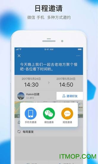 【日程邀请】你可以邀请通讯录好友或好友参与你所创建的日程,也可与好友直接共享你的日历;支持多人协作编辑,实时同步更新,让团队协作更加顺畅;