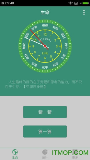 有人问,我来答。生命计算器是一款小巧精悍的计算器,只需设定好日期和时间,就能精确计算出人生已存在多少年、月、周、日、小时、分钟、秒,这不仅仅是一串数字,也是一个警醒,生命宝贵,劝君珍惜。新增的"生命对比"功能可输入多位亲友数据,通过横向对比不同年龄层的时间消耗情况,更深刻理解代际差异。