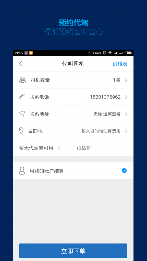 很多朋友都会开车去参加晚宴或者酒会。酒后驾车是不负责任的行为,如果被交警抓到,驾照可能会被吊销。如今,一款专业的代驾APP给用户带来了,用户下单时一键下载,司机很快就到了。值得一提的是,所有行车司机均经过严格审核,确保行车安全。他们的回复也很快,因此您不必等待太久。价格也适合你。节省更多钱,平安代驾是您找司机的绝佳选择。平台还提供预约服务功能,可提前安排重要行程的代驾,避免临时叫车的慌乱。