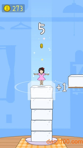 游戏中的每一次完美跳跃都能带来丰厚的奖励,随着连击次数的增加,积分将以倍数形式快速增长;在简约清新的游戏画面中,你需要帮助女孩寻找各种造型独特的豆腐块进行跳跃;游戏支持左右横向跳跃操作,玩家需要精准判断落脚点,找到最佳的站立位置。