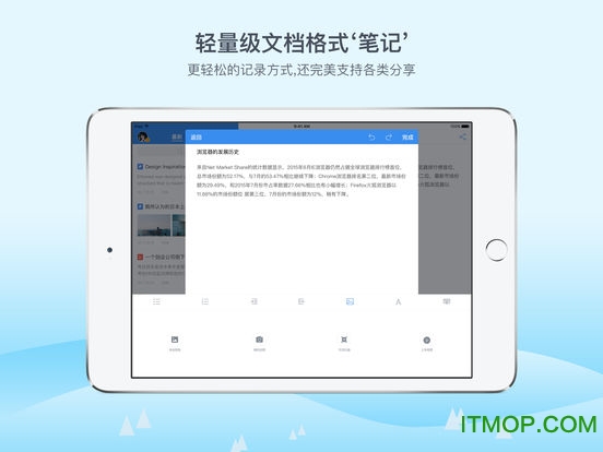 -手机端富文本编辑——在手机上也可直接编辑含有丰富格式的笔记。提供完整的格式工具栏,移动端编辑体验媲美电脑。