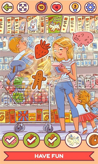 寻找解谜,游戏融合了寻物和解谜元素,玩家需要在限定时间内找出所有指定物品。随着游戏进程的推进,难度会逐渐增加,考验你的观察力和记忆力。每个关卡都经过精心设计,确保游戏体验既富有挑战性又充满乐趣。