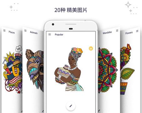 - 各种各样的涂色页:从动物、鸟类到蝴蝶、花卉,再到人物、地点和几何图案,应有尽有,让您的涂色时间充满闲适愉悦;