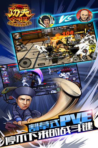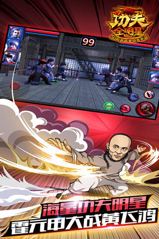 2015全新武打巨作:首款真·功夫手游《功夫全明星》有功夫!无懦夫!游戏采用电影级动作捕捉技术,完美还原中华武术精髓。