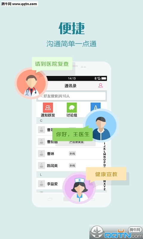 【通讯录】智能通知群发系统可一键触达全院职工,讨论组功能支持多科室协作,内置智能检索让号码查询更便捷