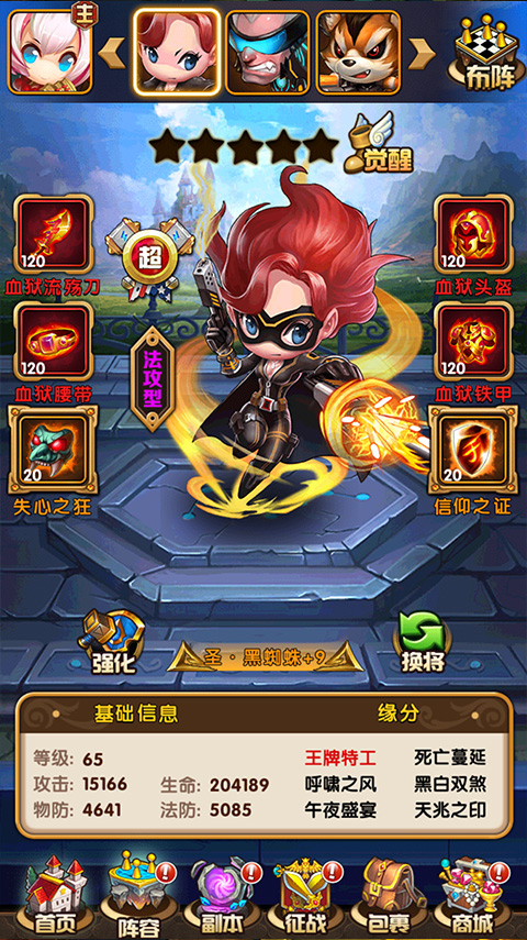 幻想阵营的核心阵容是吾王+金闪闪+葱娘+舞+半藏,这套阵容以暴击和控制见长。吾王的随机控制技能可以打乱敌方阵型,半藏的降防御效果能大幅提升团队输出。终极阵容推荐魔女+葱娘+贼王+贼猫+罗的组合,这套阵容拥有34个激活的缘分属性,几乎可以发挥每个英雄的最大潜力。