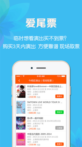 【尾票】下班或周末想看演出,没有买票怎么办?找西十区尾票,票品靠谱,信息真实,所有尾票均现场取票,即到即拿。尾票专区24小时更新,特别适合临时决定看演出的用户,经常能淘到意想不到的超值优惠。