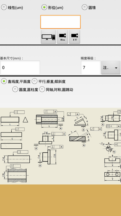 机械公差APP提供三大核心功能模块:线性尺寸公差查询、形状位置公差查询和圆锥角公差查询。在线性尺寸公差查询方面,除了支持手动输入外,还特别设计了优先配合查询功能,以及便捷的轴、孔双查询模式。形位公差和角度公差模块配备了直观的图形提示功能,帮助用户更好地理解公差要求。所有查询结果都采用图文结合的方式呈现,确保信息传达清晰准确。