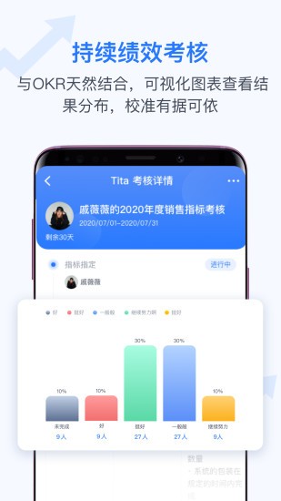轻便的考核管理流程,3分钟就能快速搭建考核目标,发起考核流程,大幅节省管理时间成本;