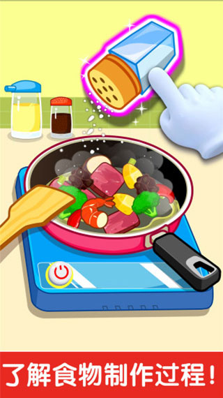 【细节优化】提升益智互动体验,助力儿童快乐启蒙,家庭轻松育儿!本次更新优化了游戏操作流畅度,增加了更多食材选择,让宝宝有更丰富的烹饪体验。同时改进了画面效果,使游戏场景更加生动有趣。