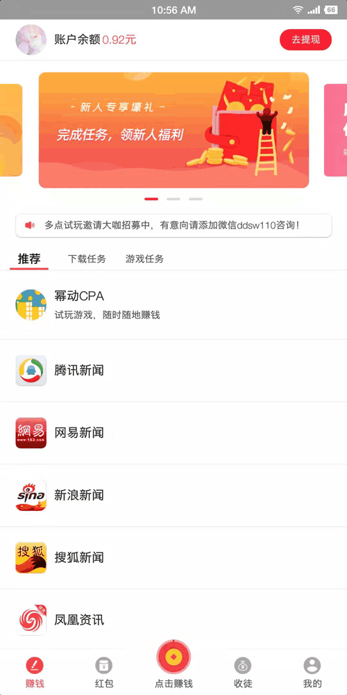 修复了部分影响用户体验的系统bug。在任务列表中新增了金牌任务标识,帮助用户快速识别高收益任务,提高赚钱效率。