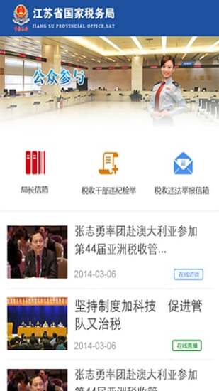 作为新时期江苏国税工作信息化建设的"形象工程",网站面向国家机关、社会公众、企事业单位和个人提供全方位的税务服务。其中包括税收法规查询、政策咨询、文件赠阅、投诉举报等多项便民服务。同时,网站还精选转载政治、经济和税收调研方面的优质文章,为税务人员和纳税人提供学习参考资料。