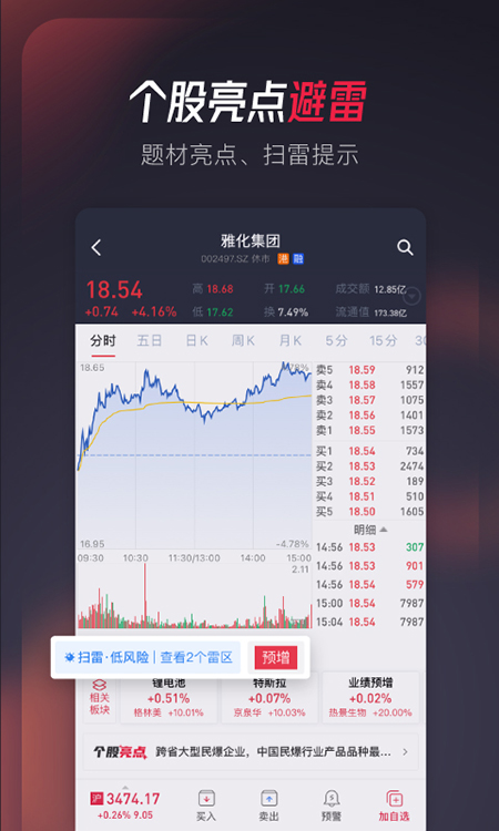 提供全方位的行情数据支持:实时涨停解读、板块异动监测、个股亮点分析、自选股风险评估